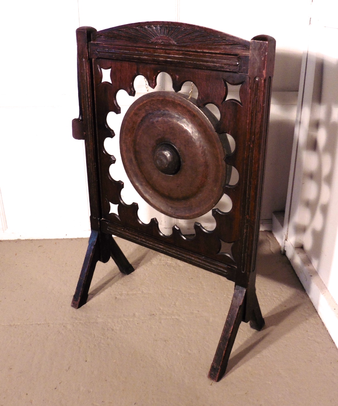 Large Art Deco Mahogany & Brass Dinner Gong