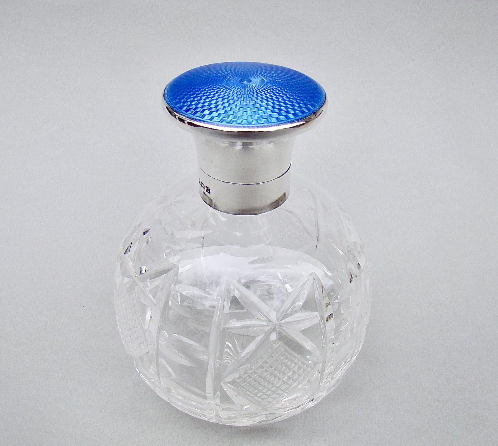 Large Art Deco Silver Mounted Guilloche Enamel Glass Scent Bottle By Mappin & Webb, Birmingham 1927
