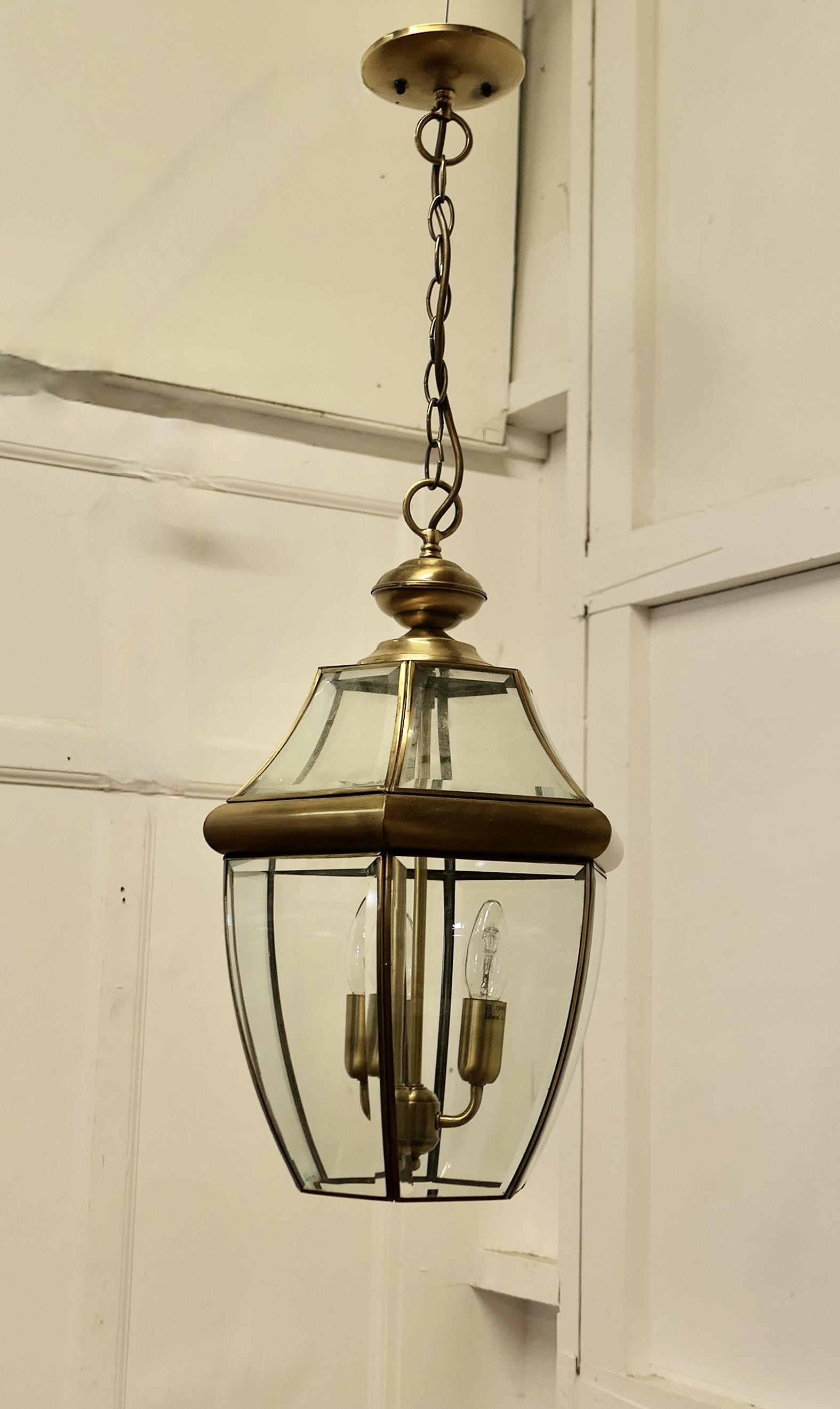 Large Art Deco Style Brass & Glass Hall Lantern