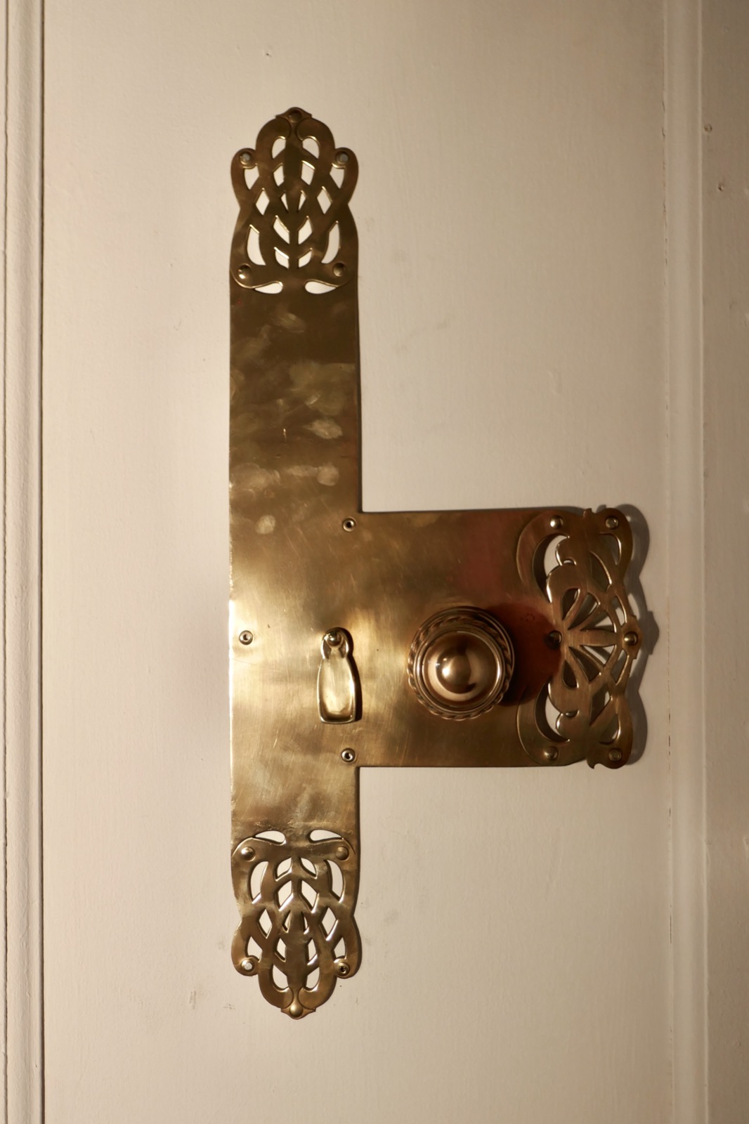 Large Art Nouveau Brass Front Door Plate with Knob & Escutcheon