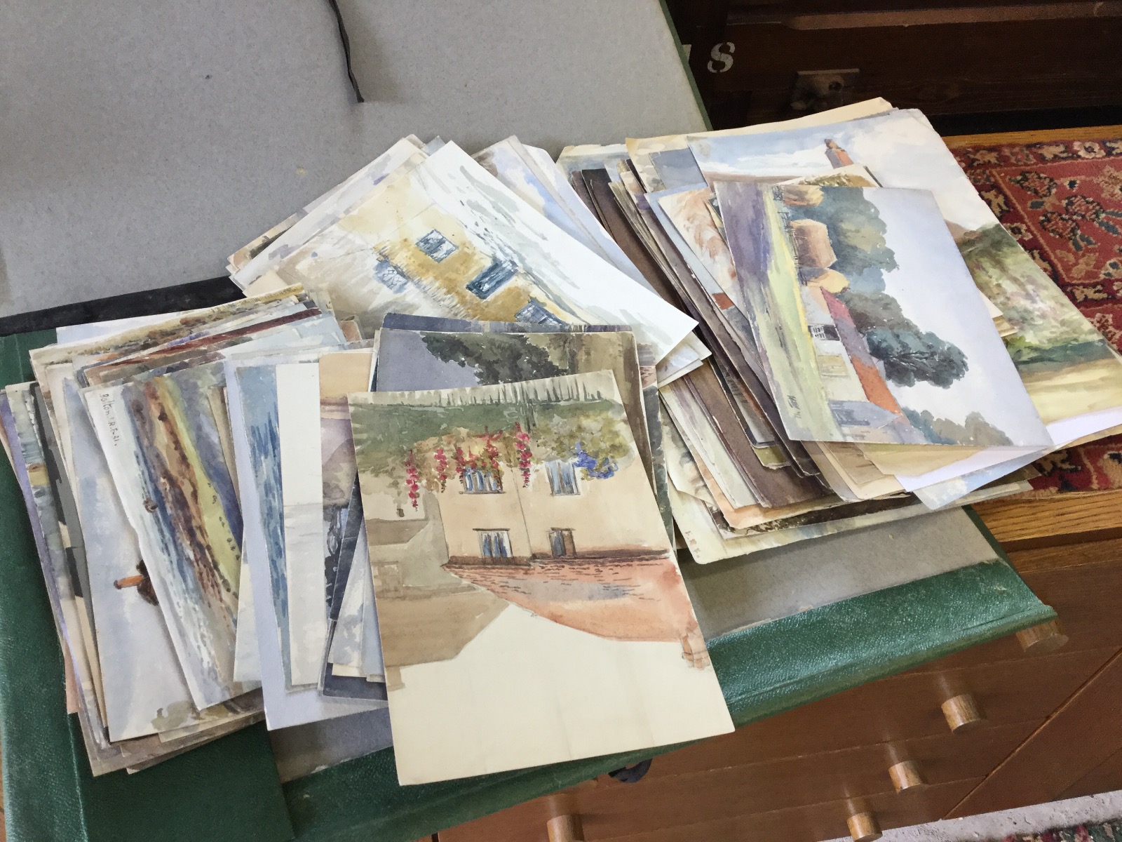 Large Artist's Portfolio Full of Over 150 Watercolour Paintings
