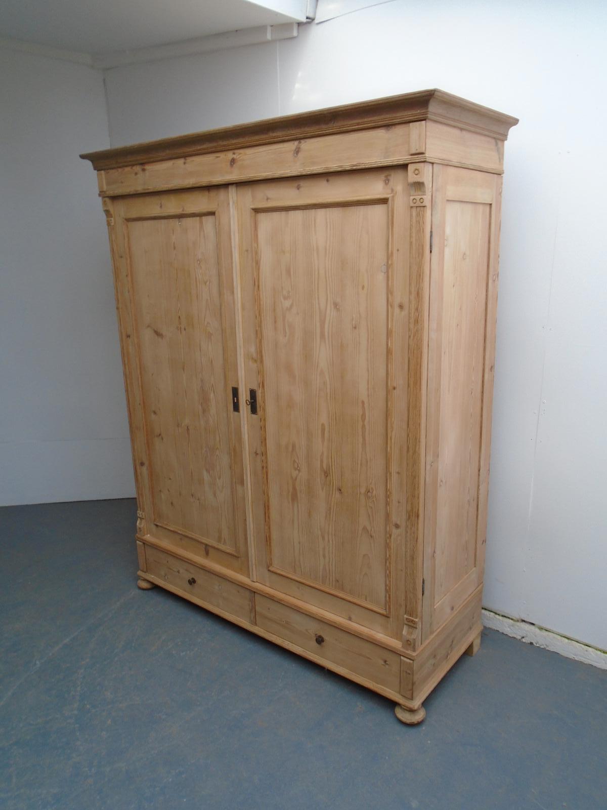 Large Arts & Crafts Antique Pine 2 Door Knockdown Wardrobe to wax / paint