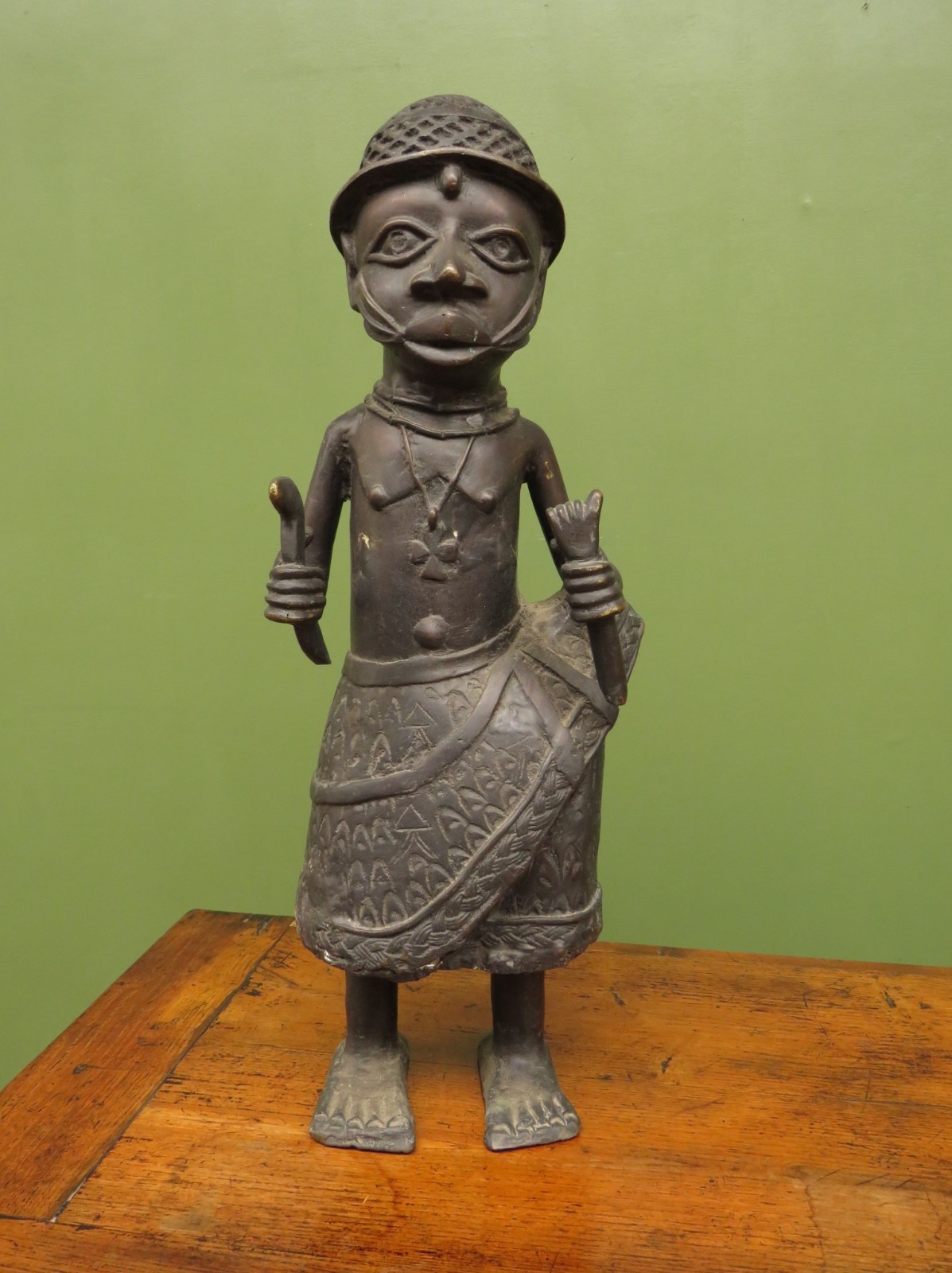 Large Benin Bronze Warrior Figure, King Oba