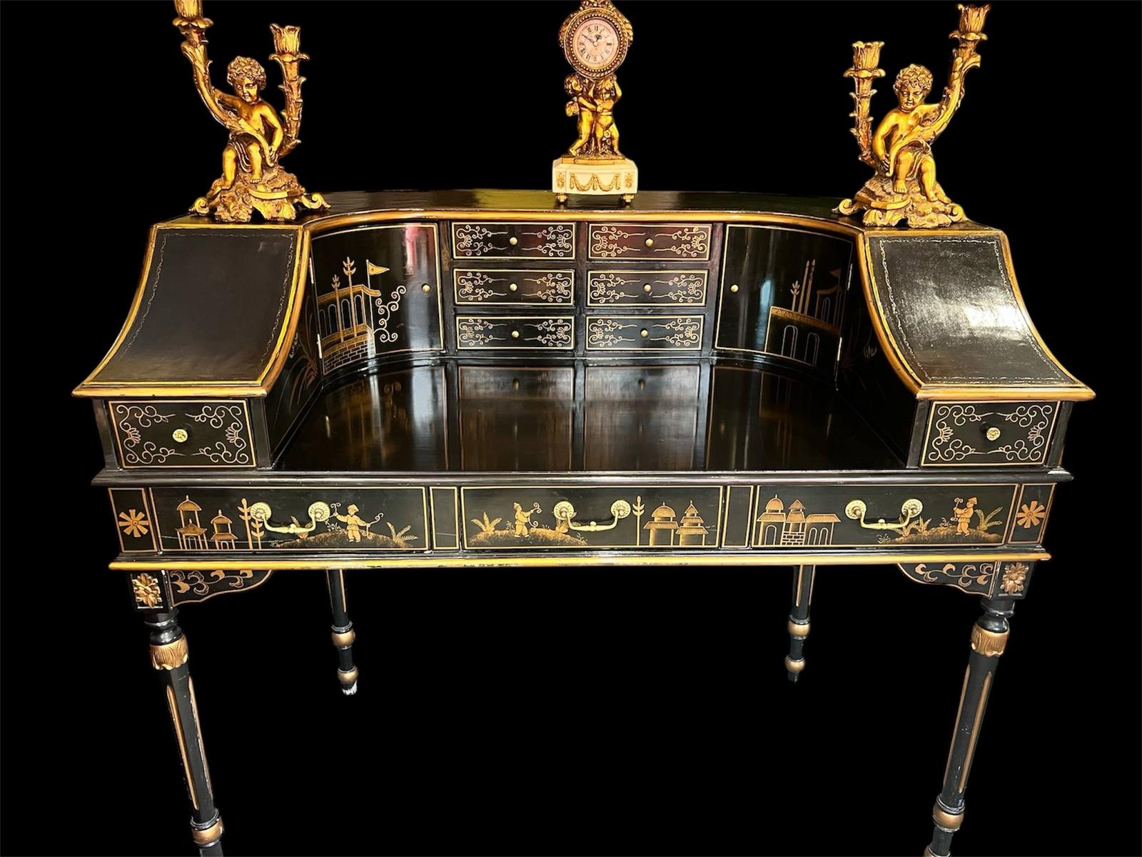 Large Black Lacquered Chinoiserie Carlton House Desk c.1920