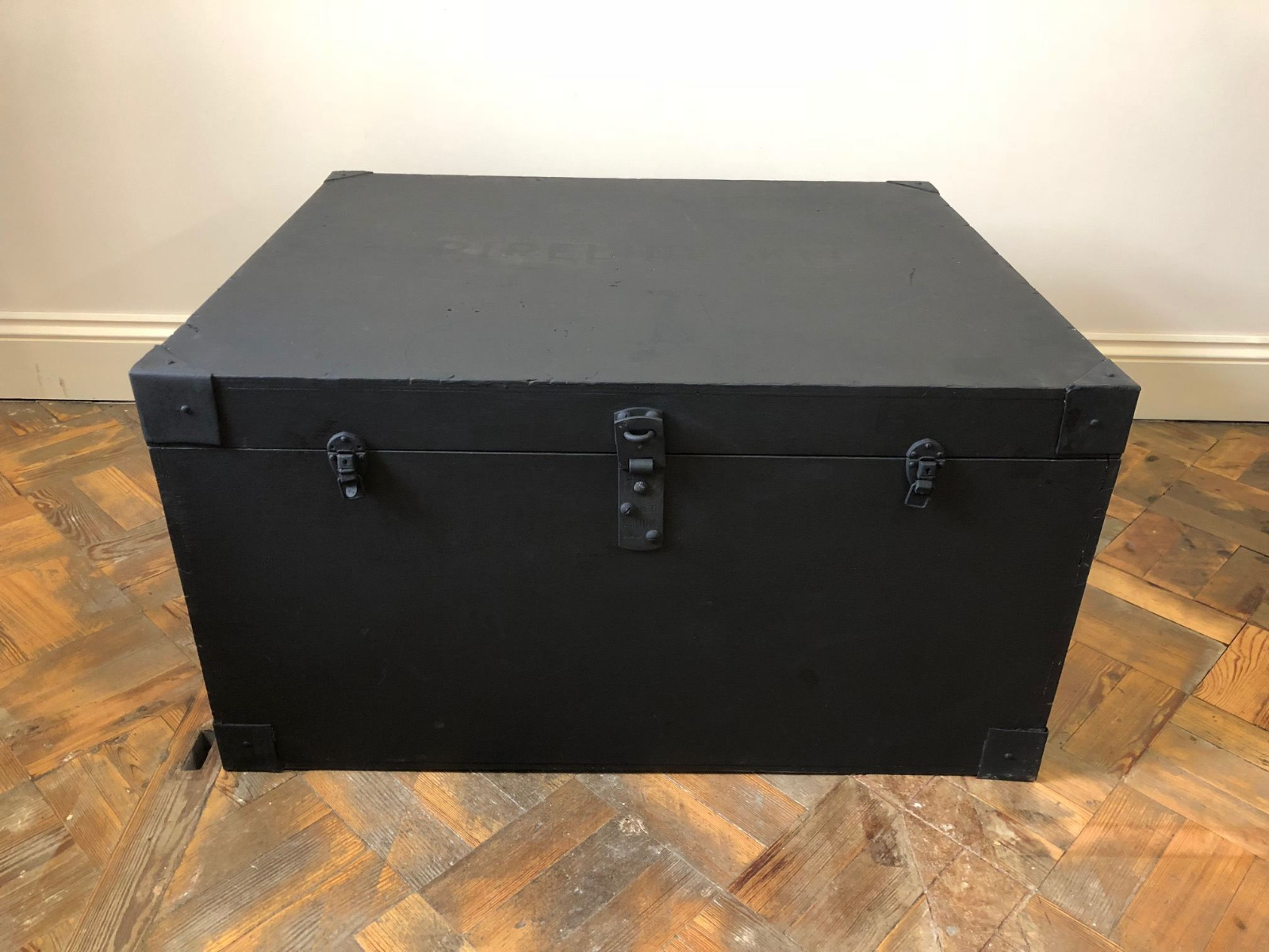 Large Black Painted Idustrial Style Wooden Storage Trunk