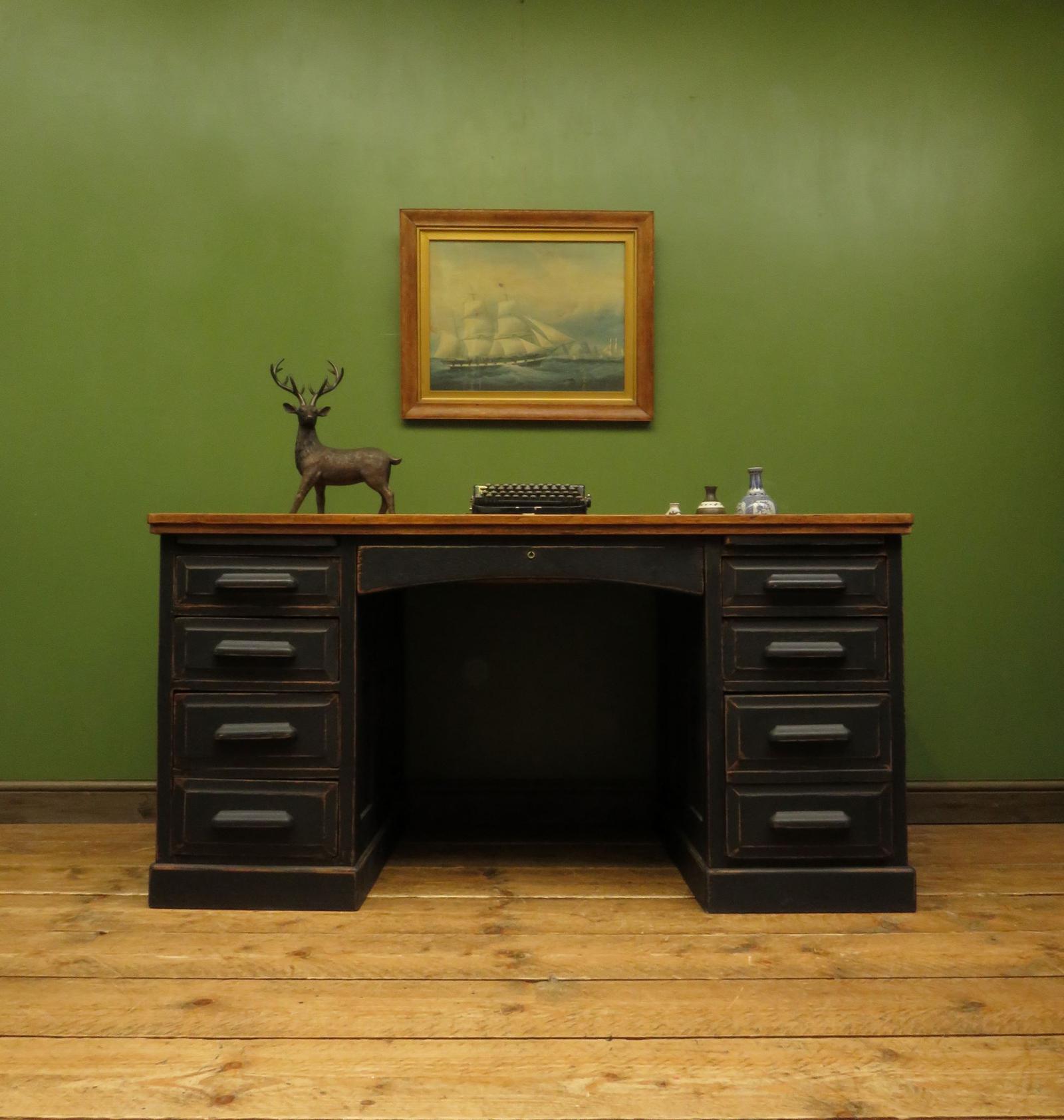 Large Black Vintage Painted Oak Desk, Architects Plan Desk, Mid Century