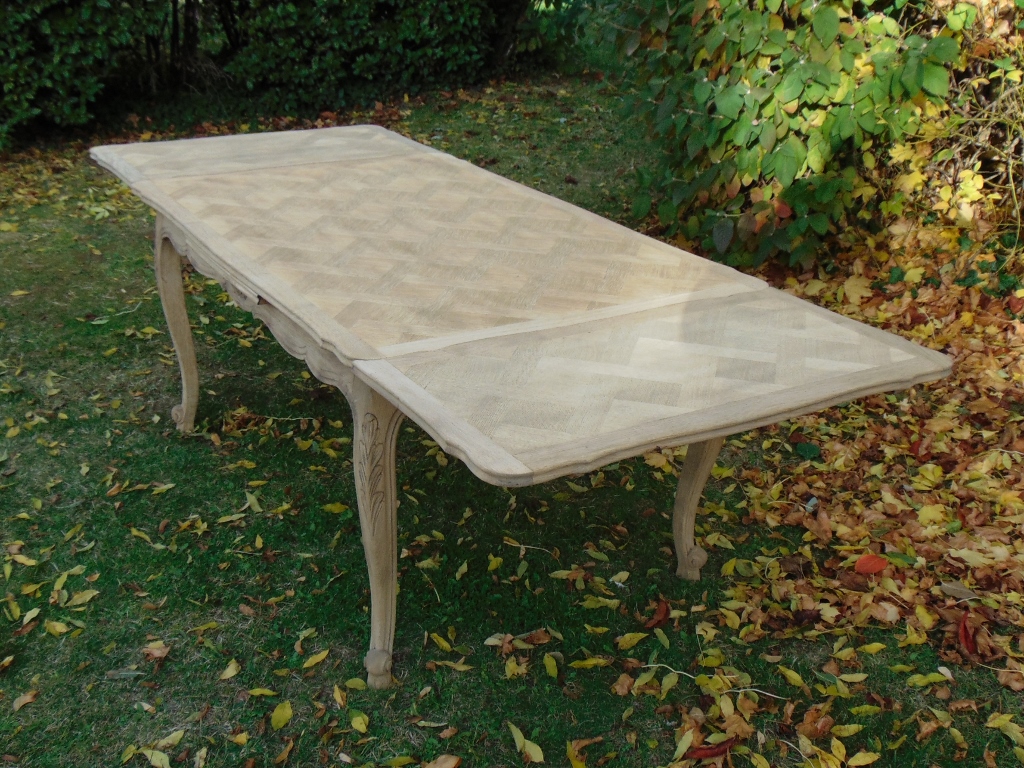 Large Bleached Oak Draw Leaf Dining Table