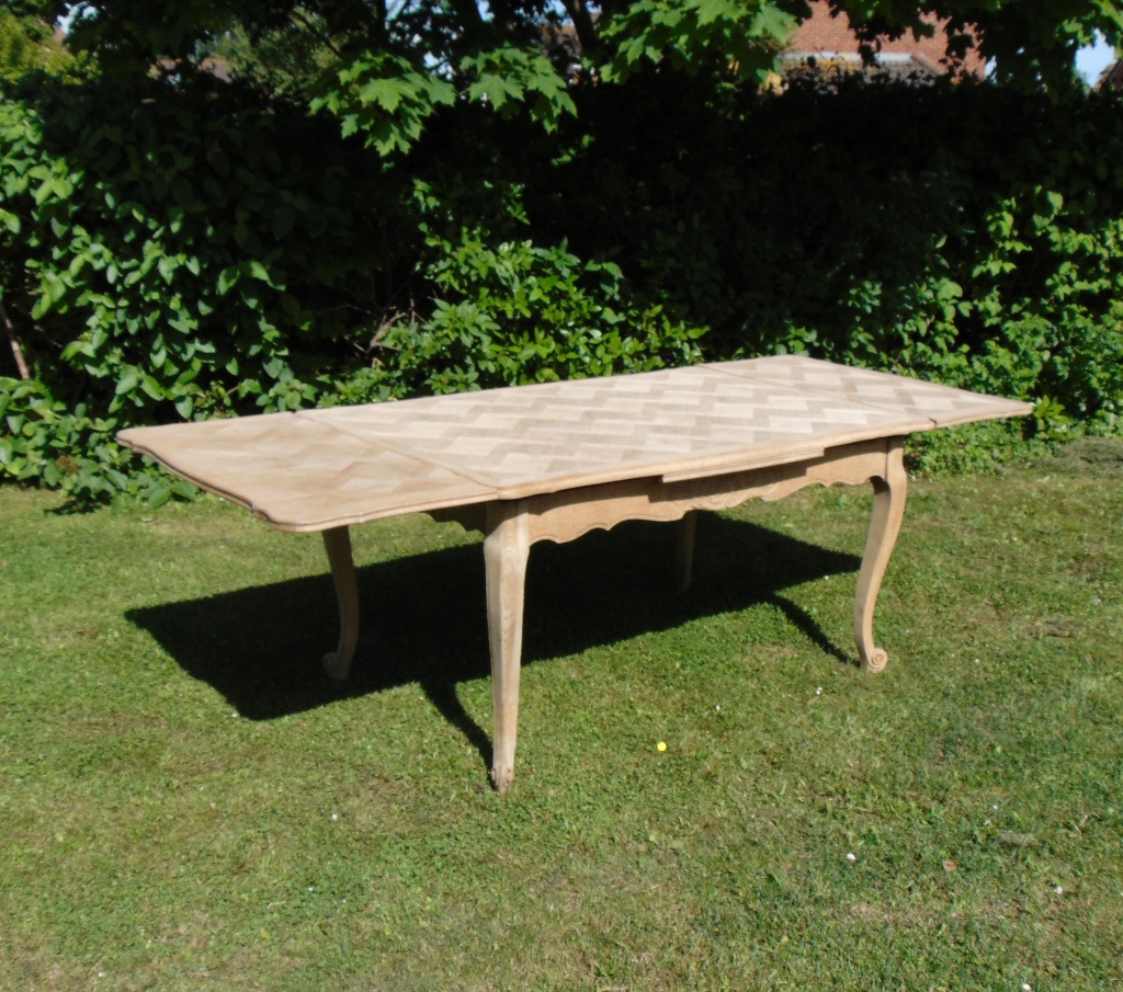 Large Bleached Oak Draw Leaf Dining Table