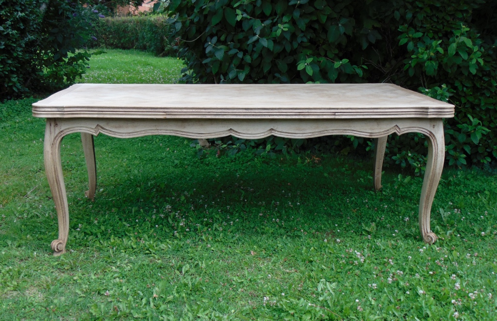 Large Bleached Oak Drawer Leaf Dining Table