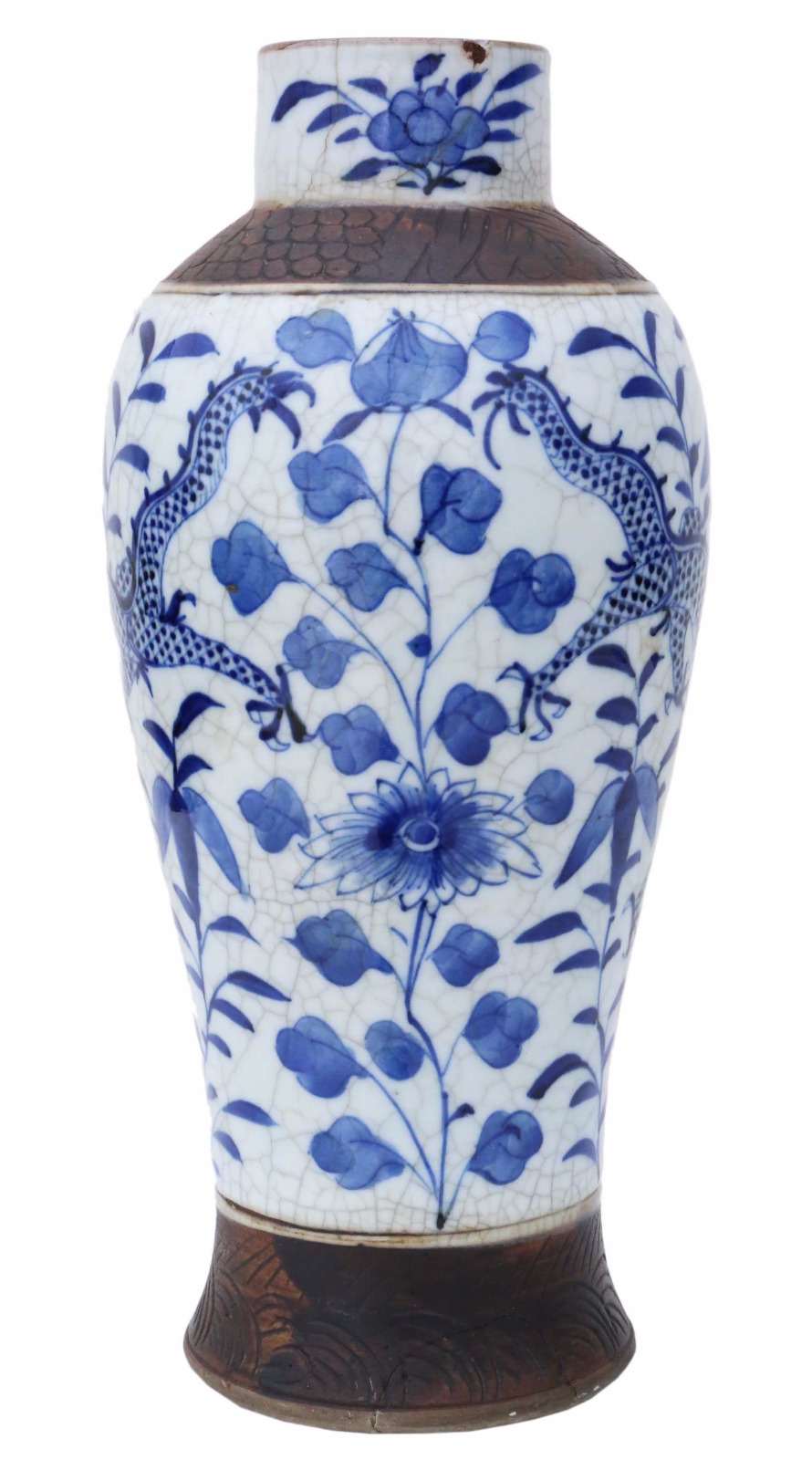 Large Blue & White Chinese Oriental Ceramic Vase (1 of 1)