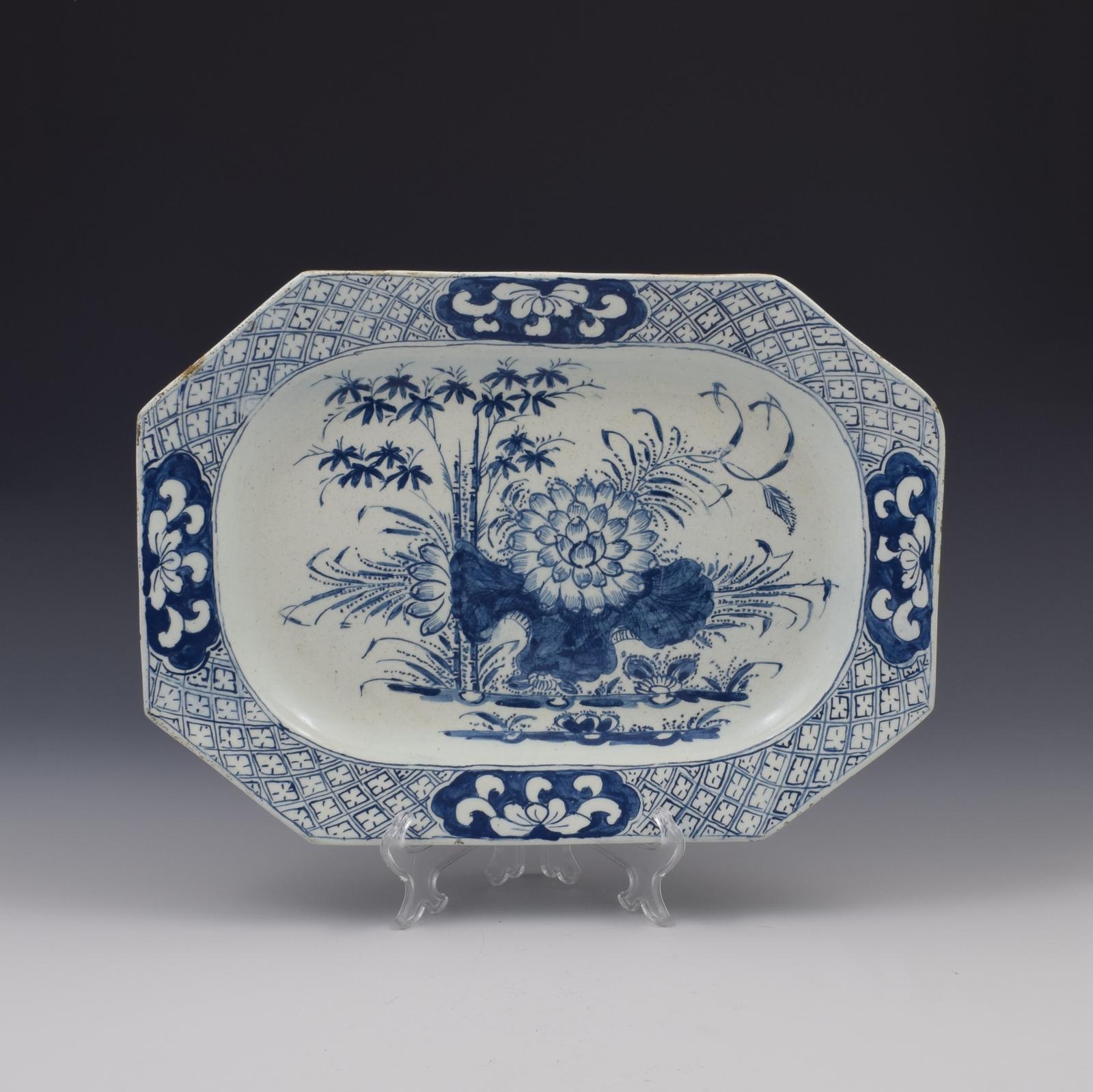 Large Bow Porcelain Lotus & Bamboo Octagonal Serving Dish c.1760