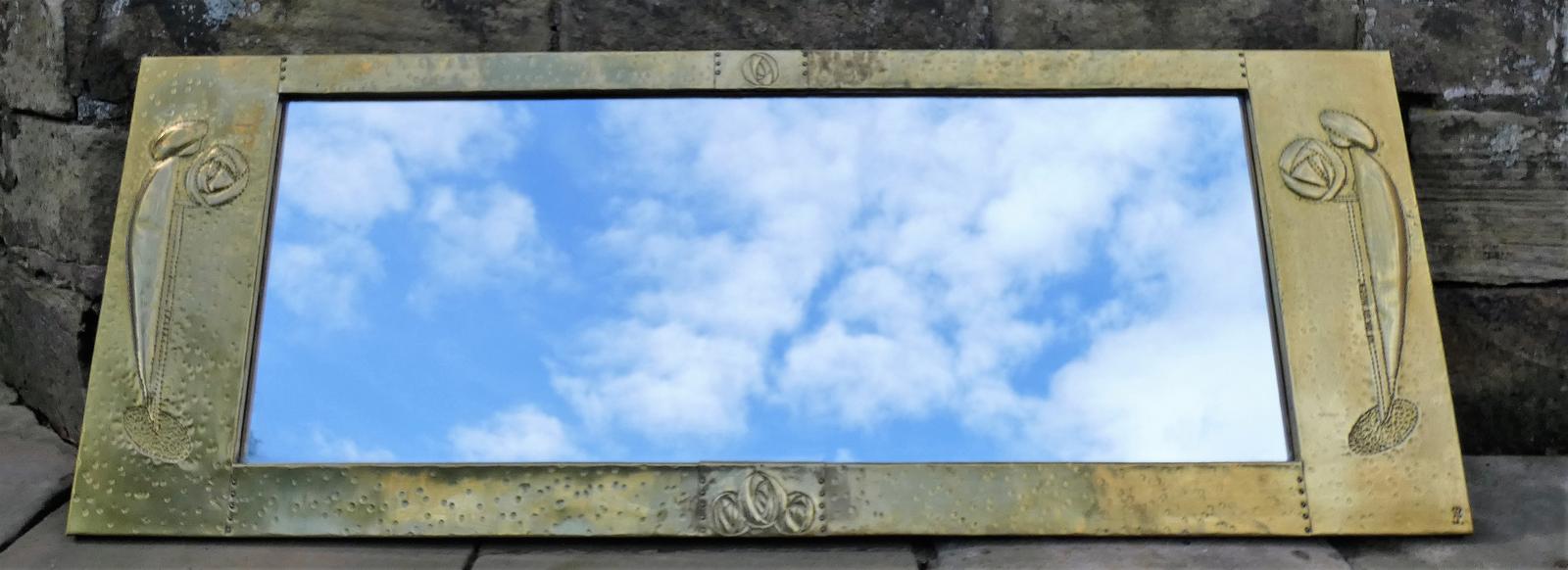Large Brass Arts & Crafts Mirror - Glasgow Rose Design