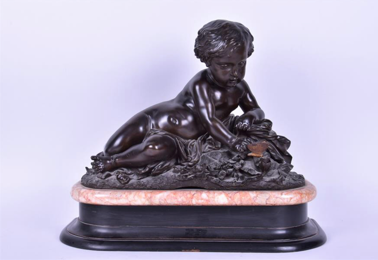 Large Bronze Cherub on Marble & Wooden Base (1 of 1)