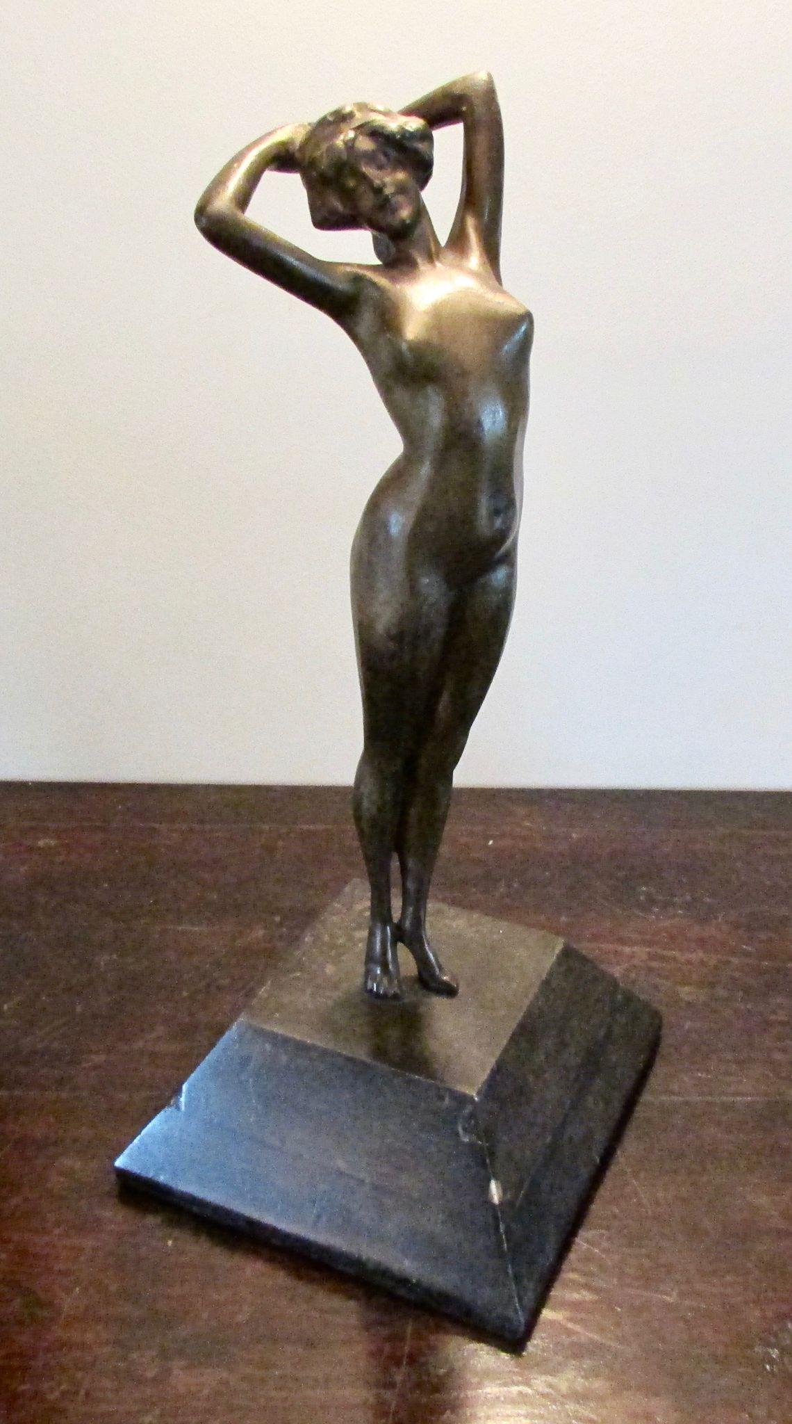 Large Bronze Nude Lady, on Bronze Base circa 1900's