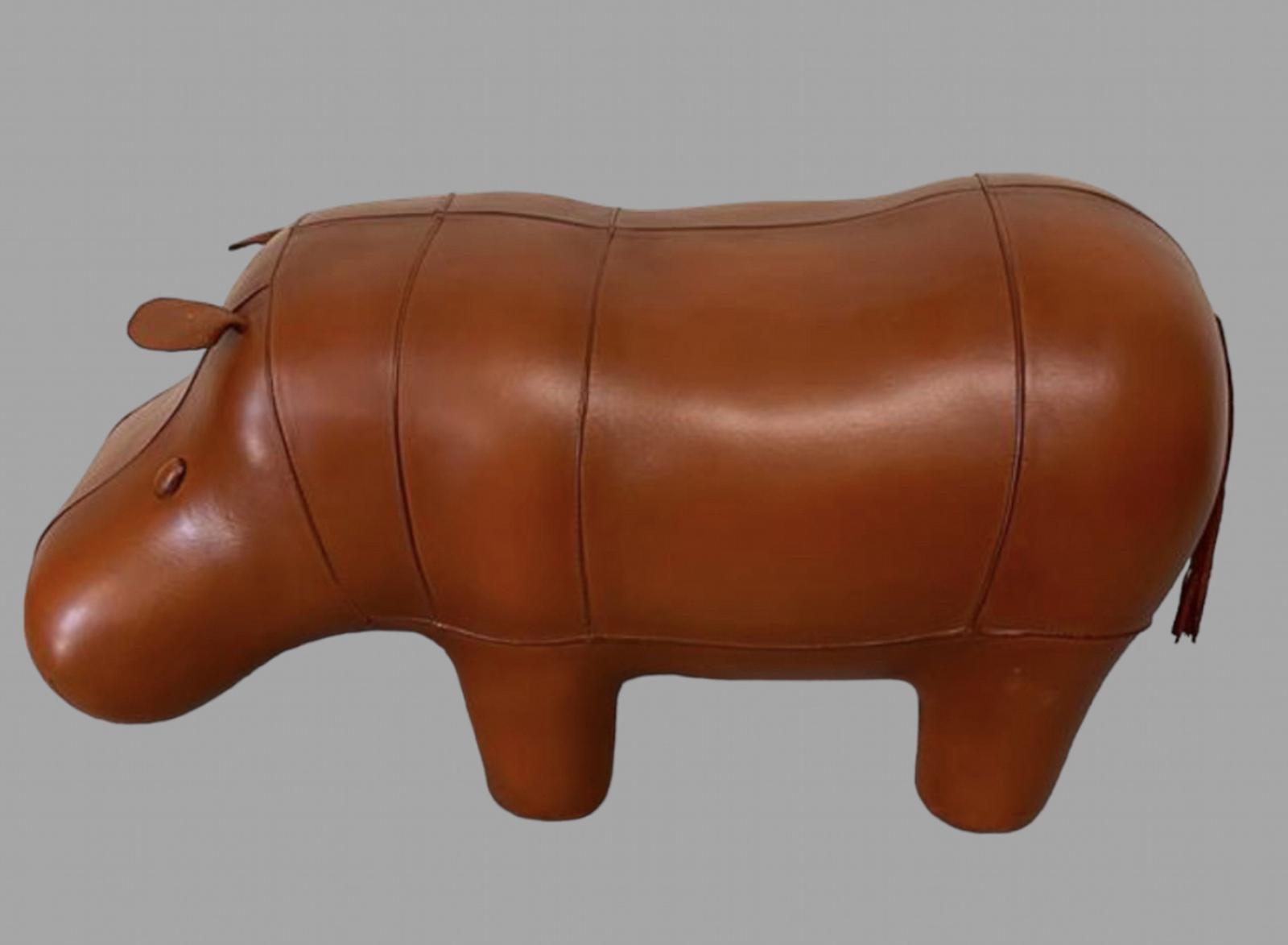 Large Brown Covered Hippo Footstool or Seat (1 of 4)