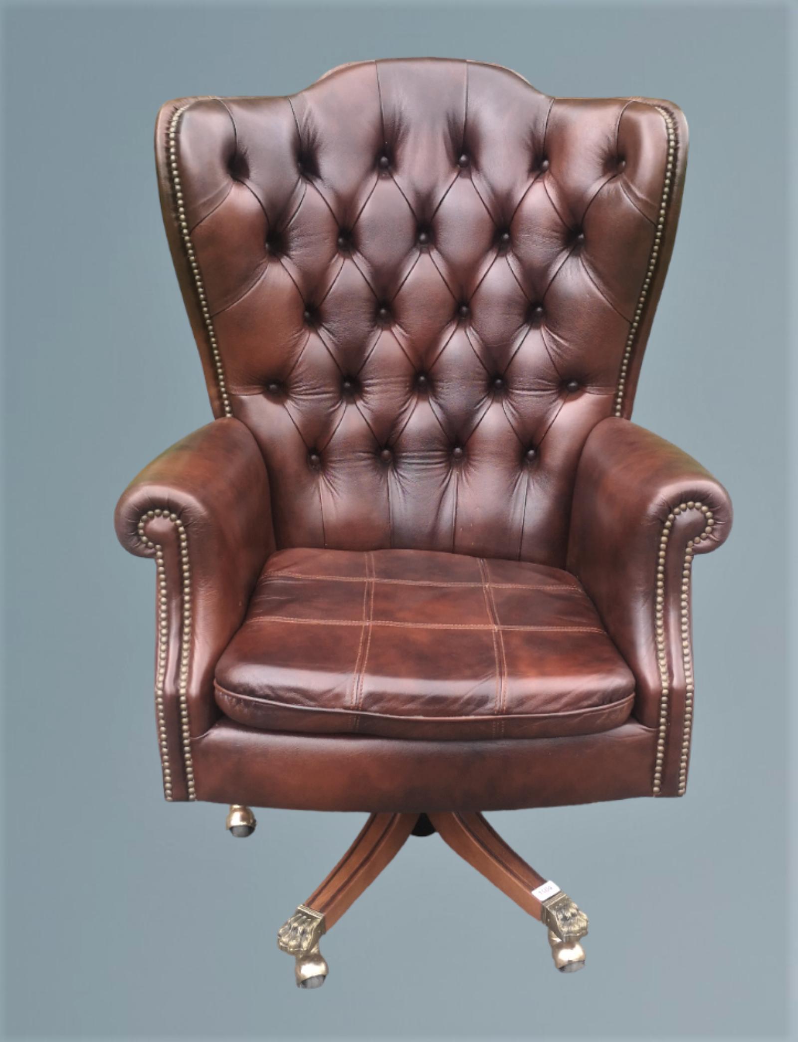 Large Brown Leather Chesterfield Office Chair