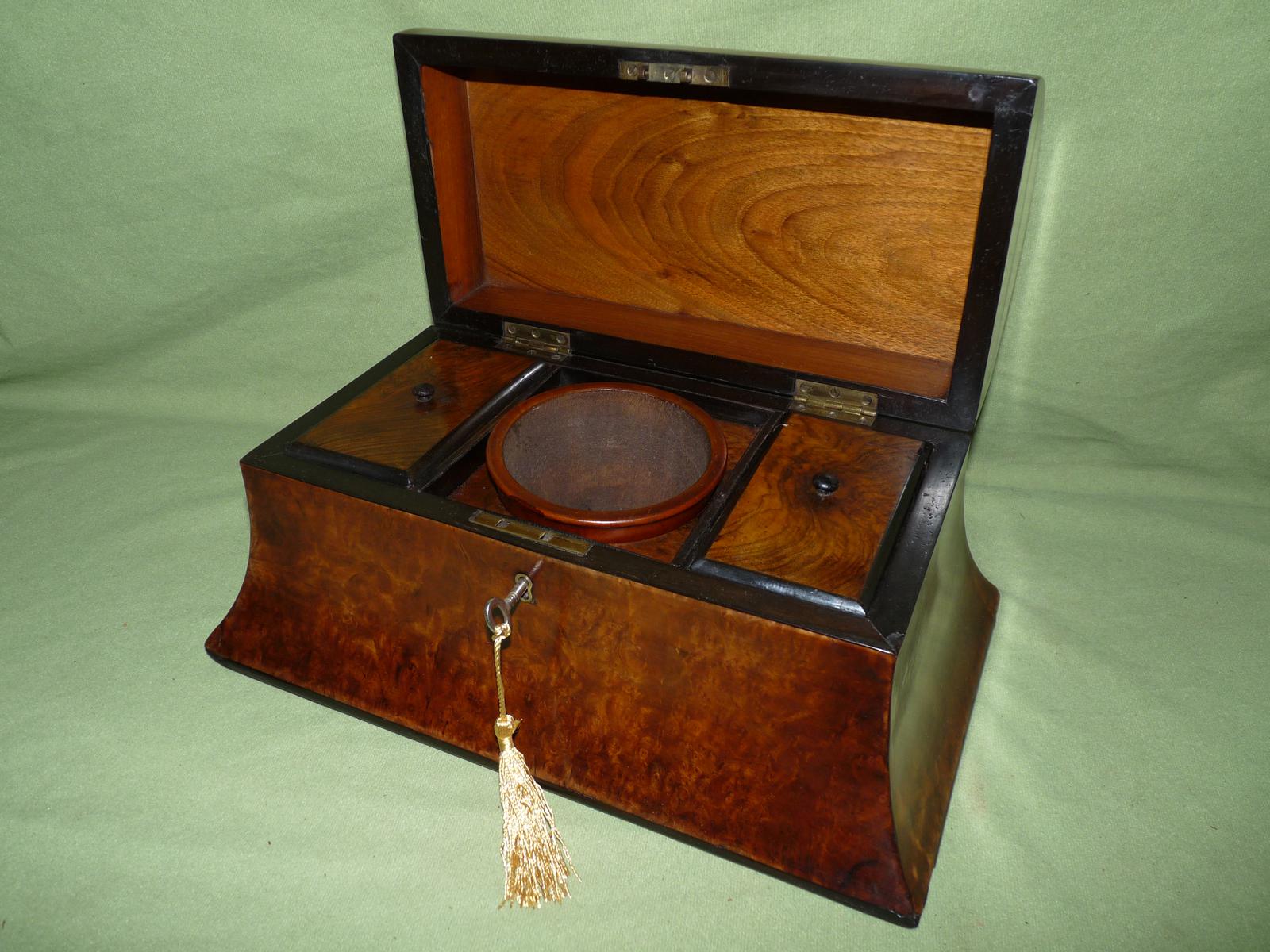 Large Burr Walnut Bell Style Tea Caddy - Original Lids c.1870