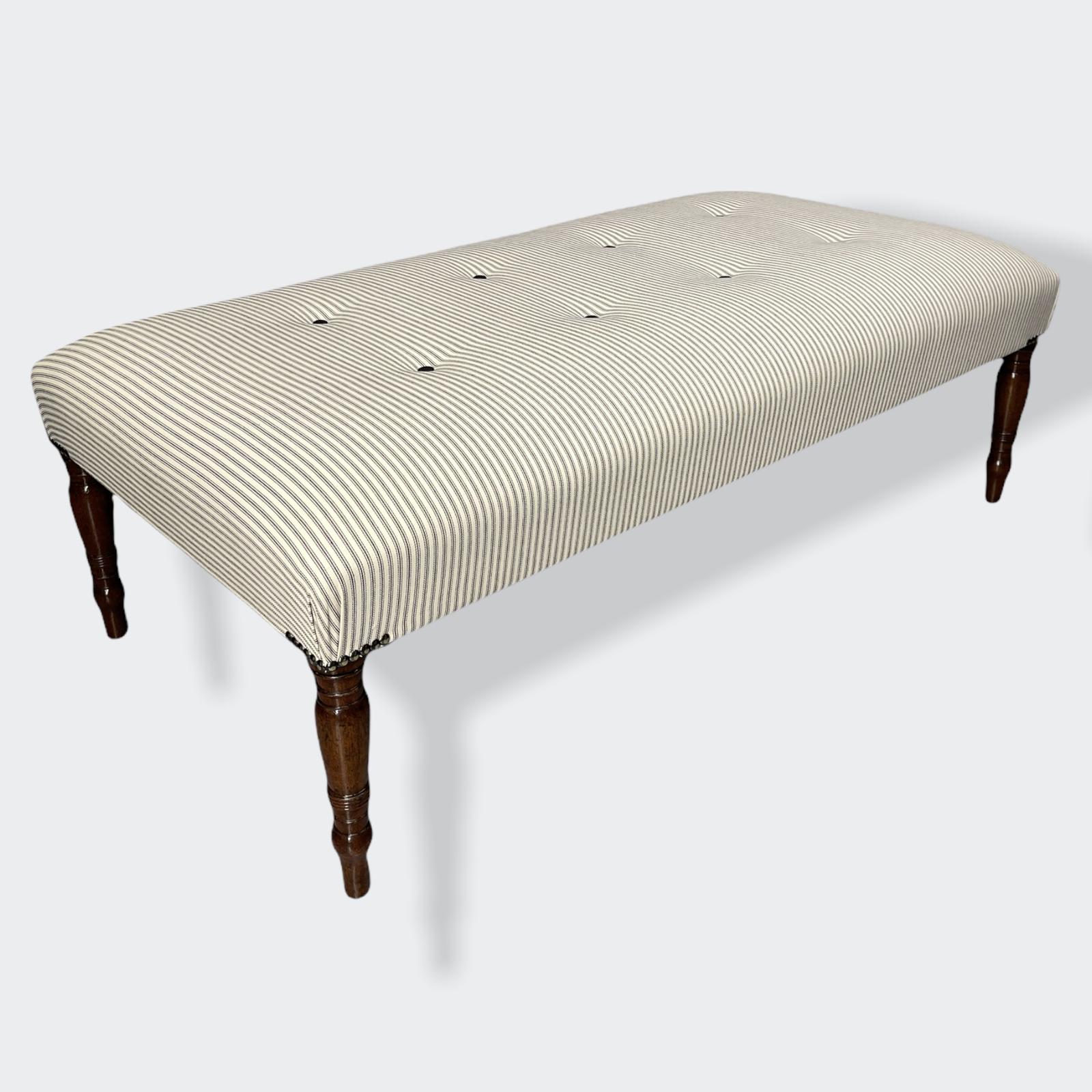 Large Buttoned Ticking Stripe Centre Footstool (1 of 11)