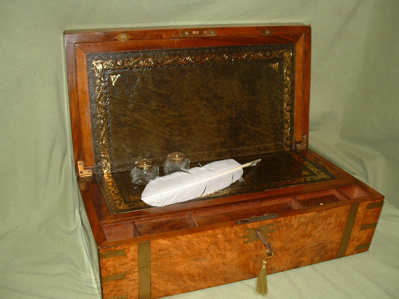 Large Campaign Style Walnut Writing Box. Secret Drawers c.1865