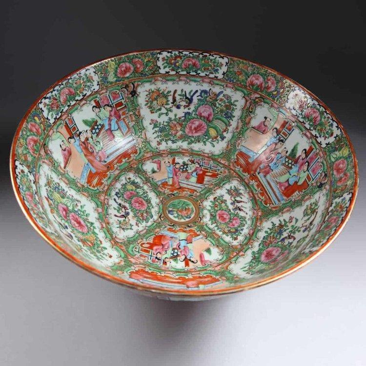 Large Canton 'Rose Medallion' Porcelain Punch Bowl