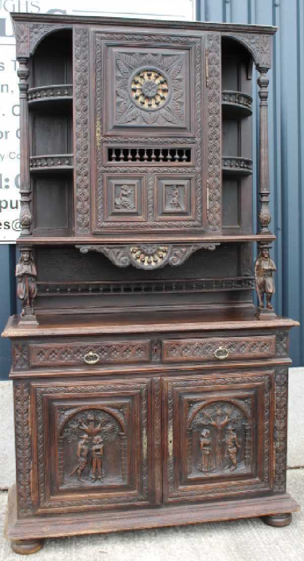Large Carved Breton Oak Buffet 1920s Cupboards Carved Panels