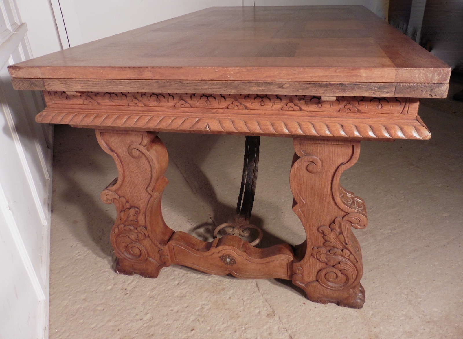 Large Carved & Parquetry Oak Draw Leaf Table C.1900