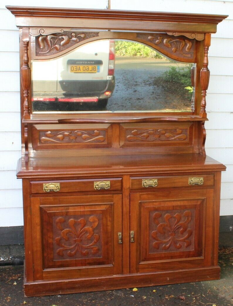 Large Carved Walnut Sideboard Mirror Back c.1910