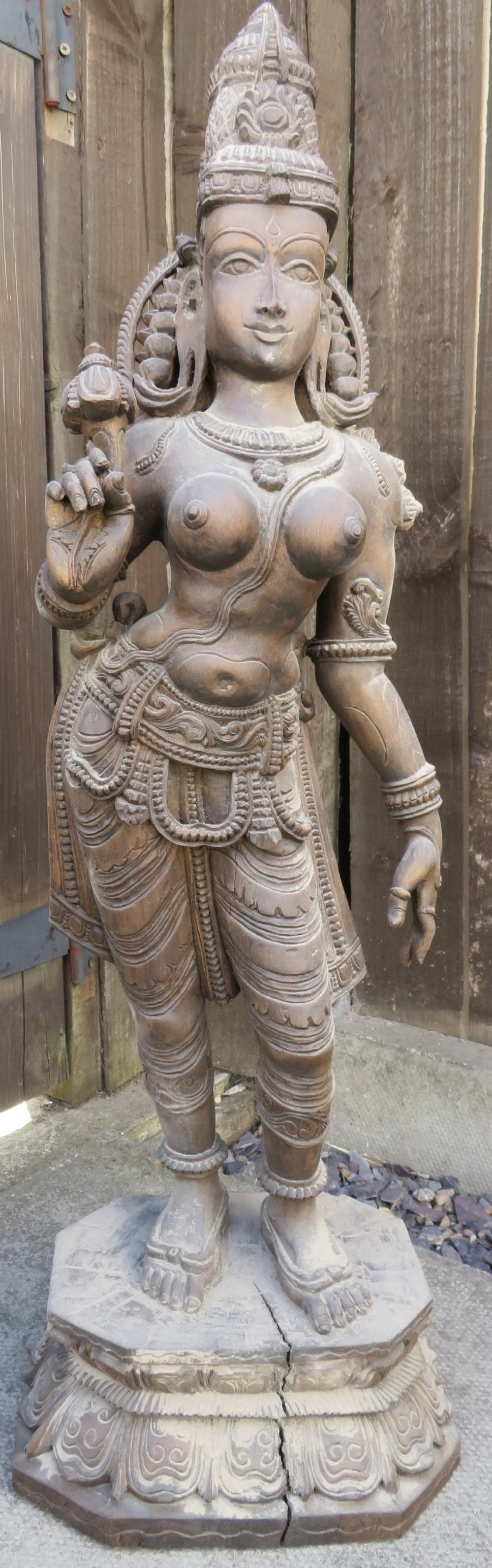 Large Carved Wood Figure of The Goddess Parvati - South India, Tamil Nadu - Early 20th Century
