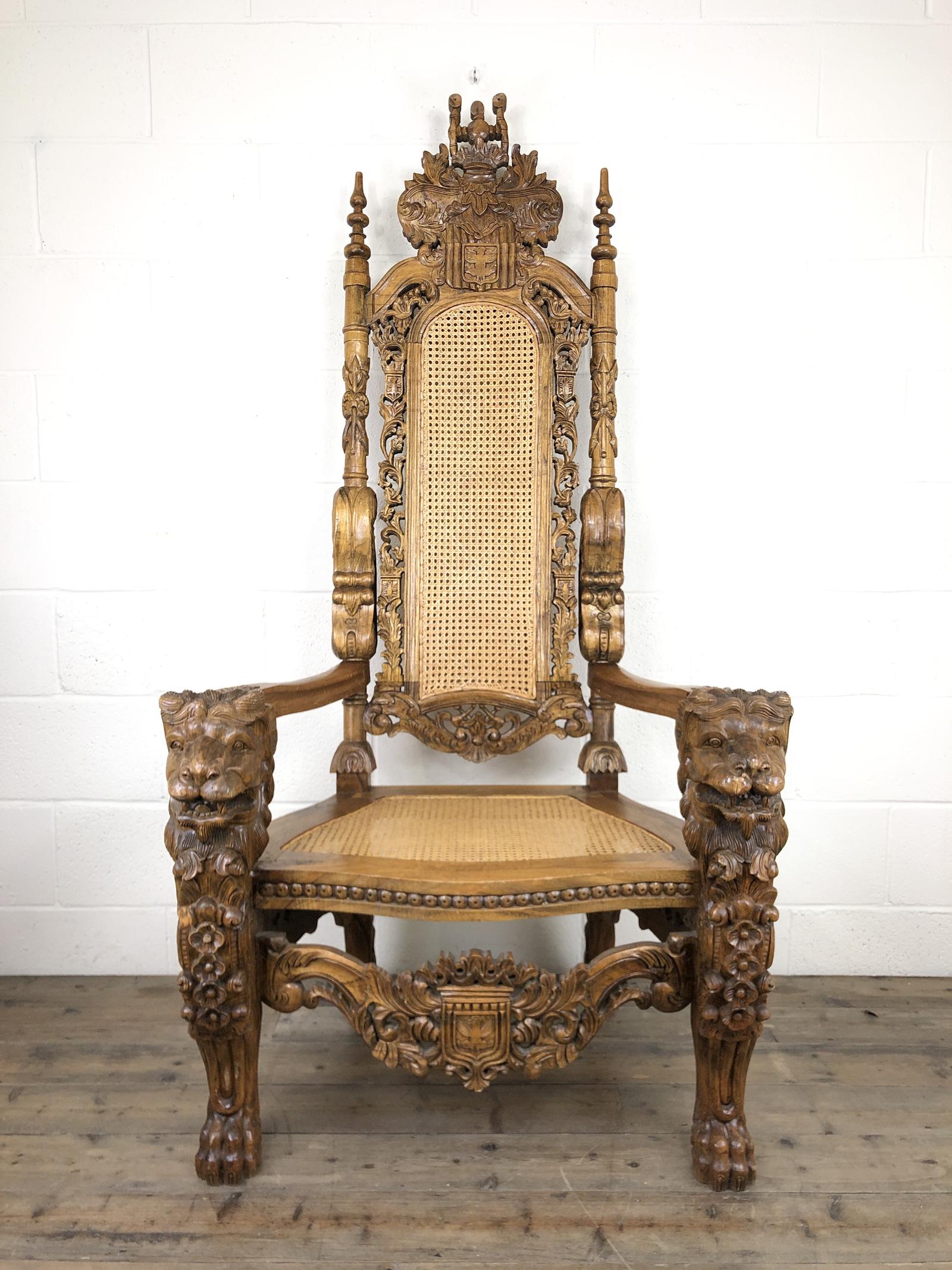 Large Carved Wooden Lion Throne Chair (1 of 10)