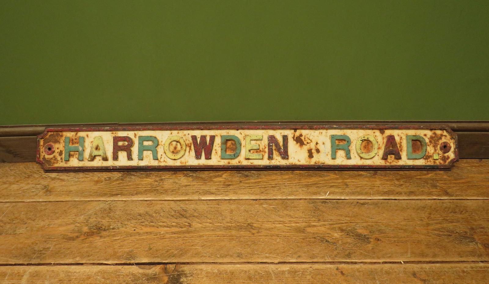 Large Cast Iron Harrowden RD Roadsign