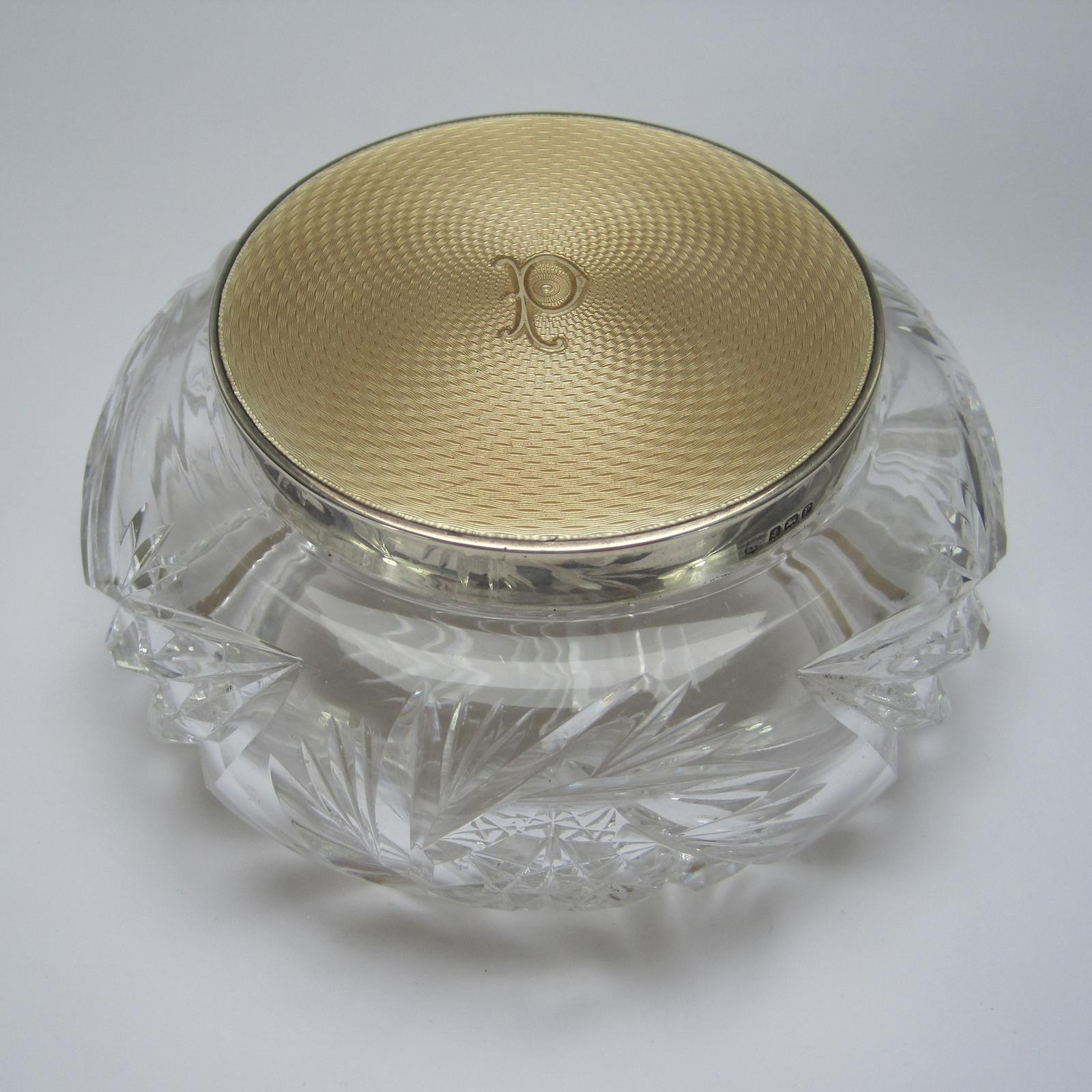 Large Champagne Colour English Silver Guilloche Enamel Jar (1 of 6)