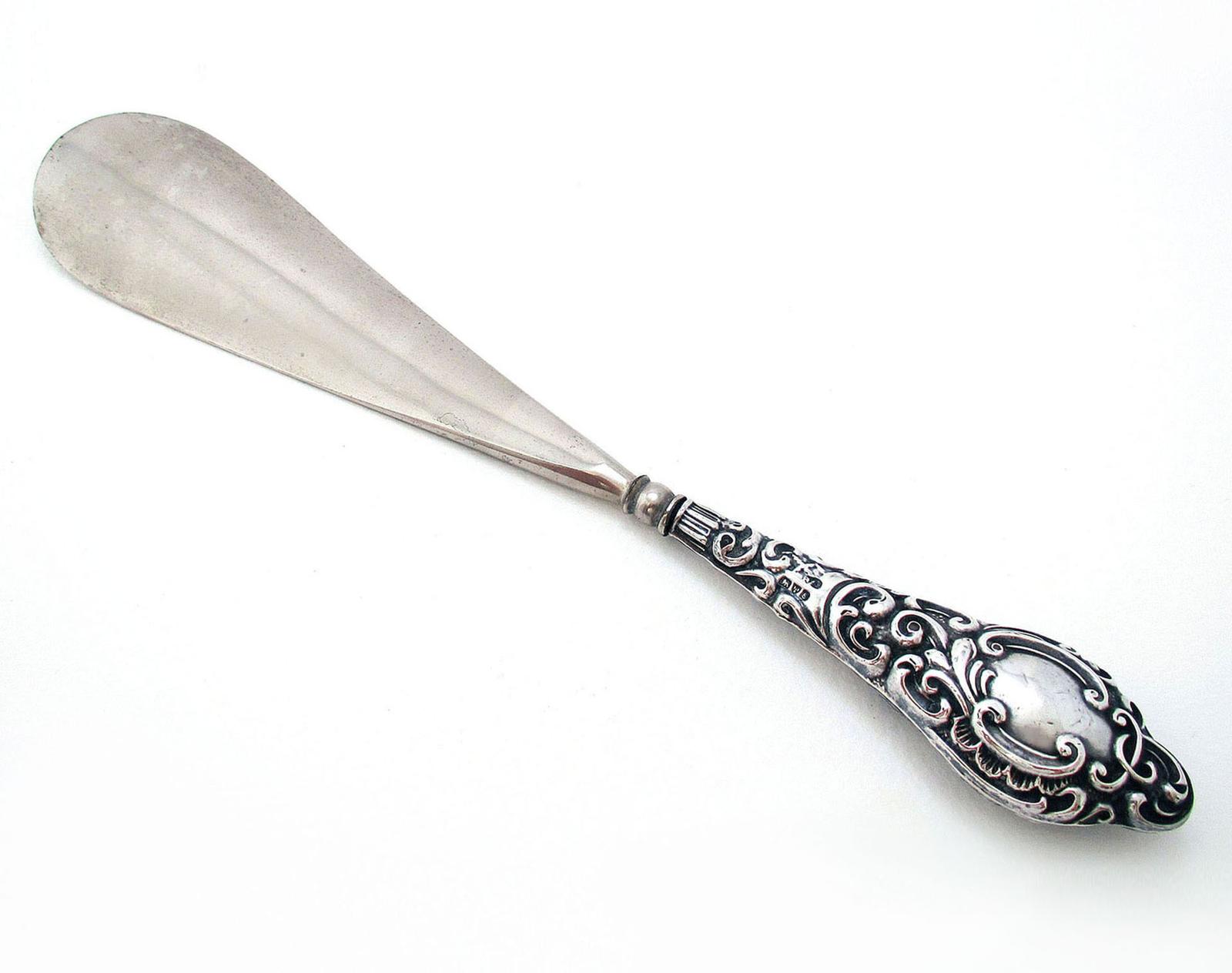 Large Chester English Edwardian Antique Sterling Silver Handled Shoe Horn
