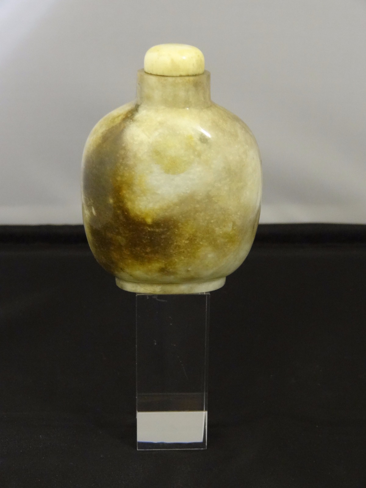 Large Chinese Agate Snuff Bottle, Mixed Olive & Creamy Tones, 19th Century