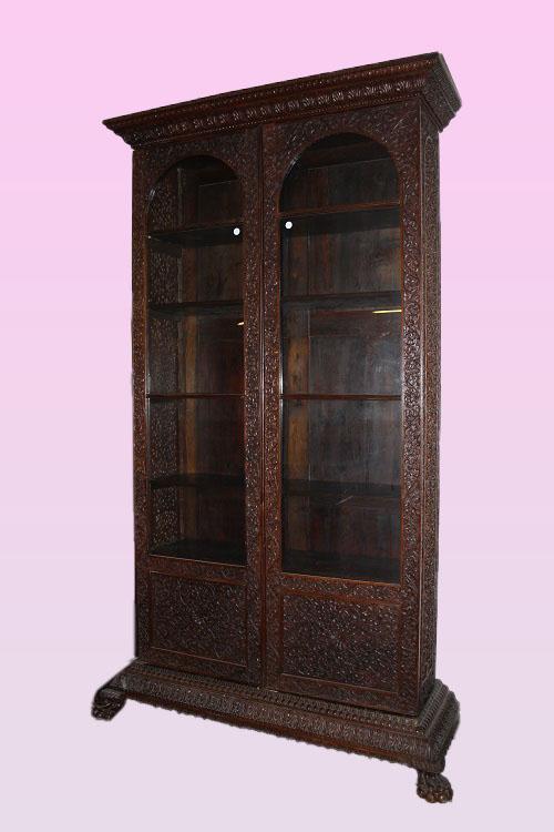 Large Chinese Display Cabinet Bookcase from the 1800s, Richly Carved