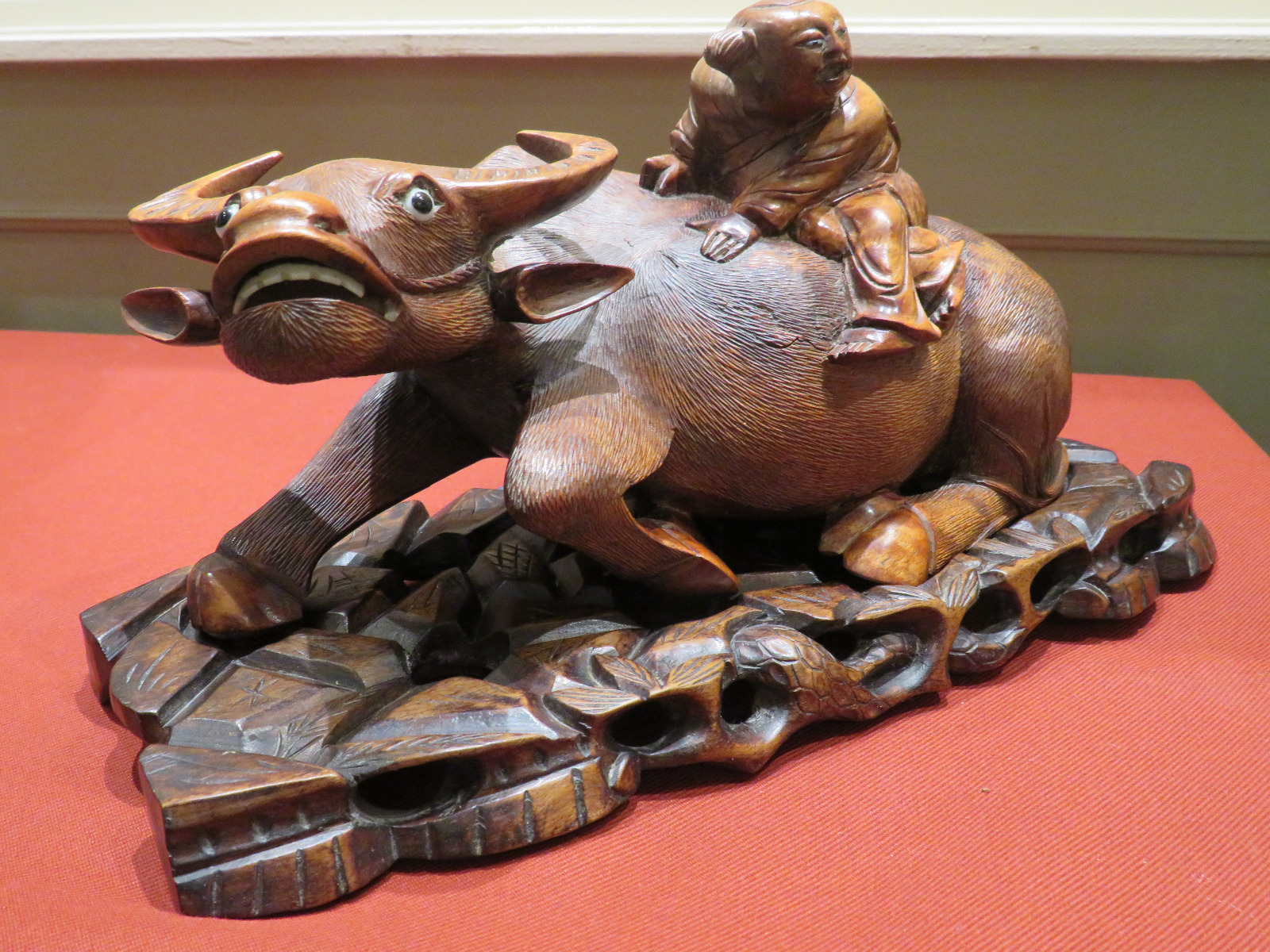 Large Chinese Hardwood Carving Buffalo & Boy c.1900