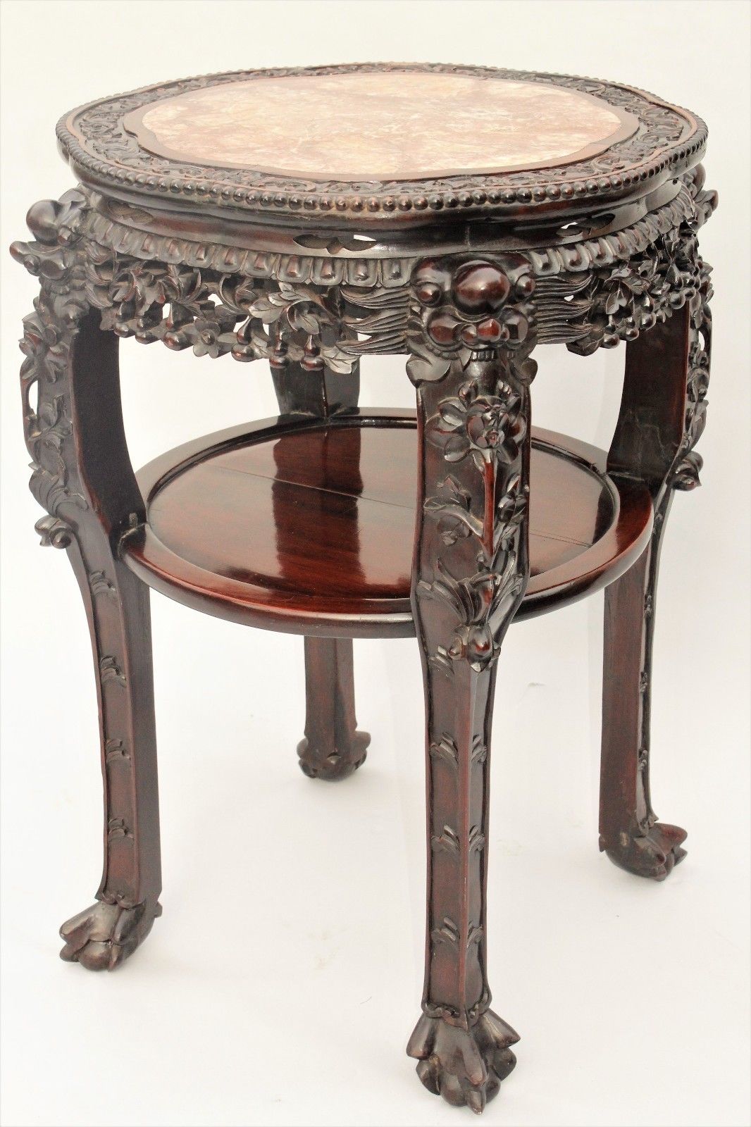 Large Chinese Hardwood Marble Top Lamp Table / Urn Stand