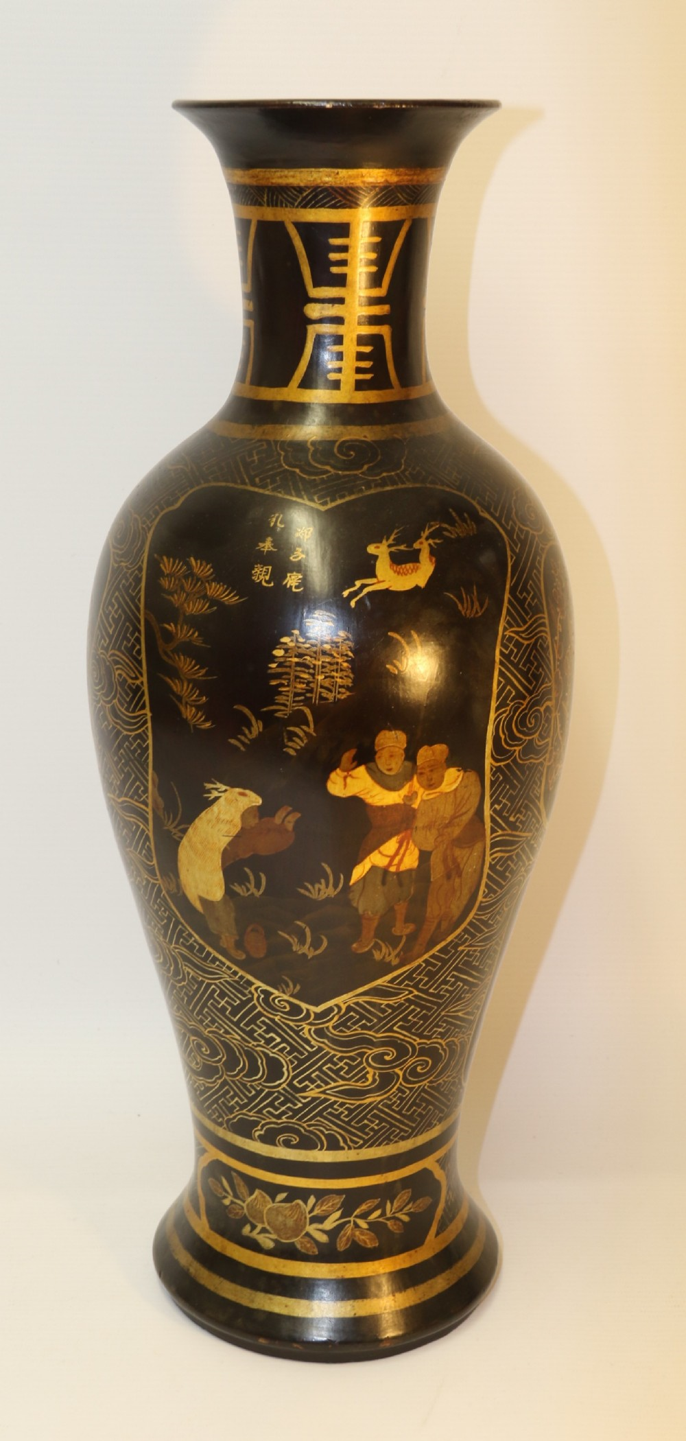 Large Chinese Lacquered & Turned Wooden Vase (1 of 14)
