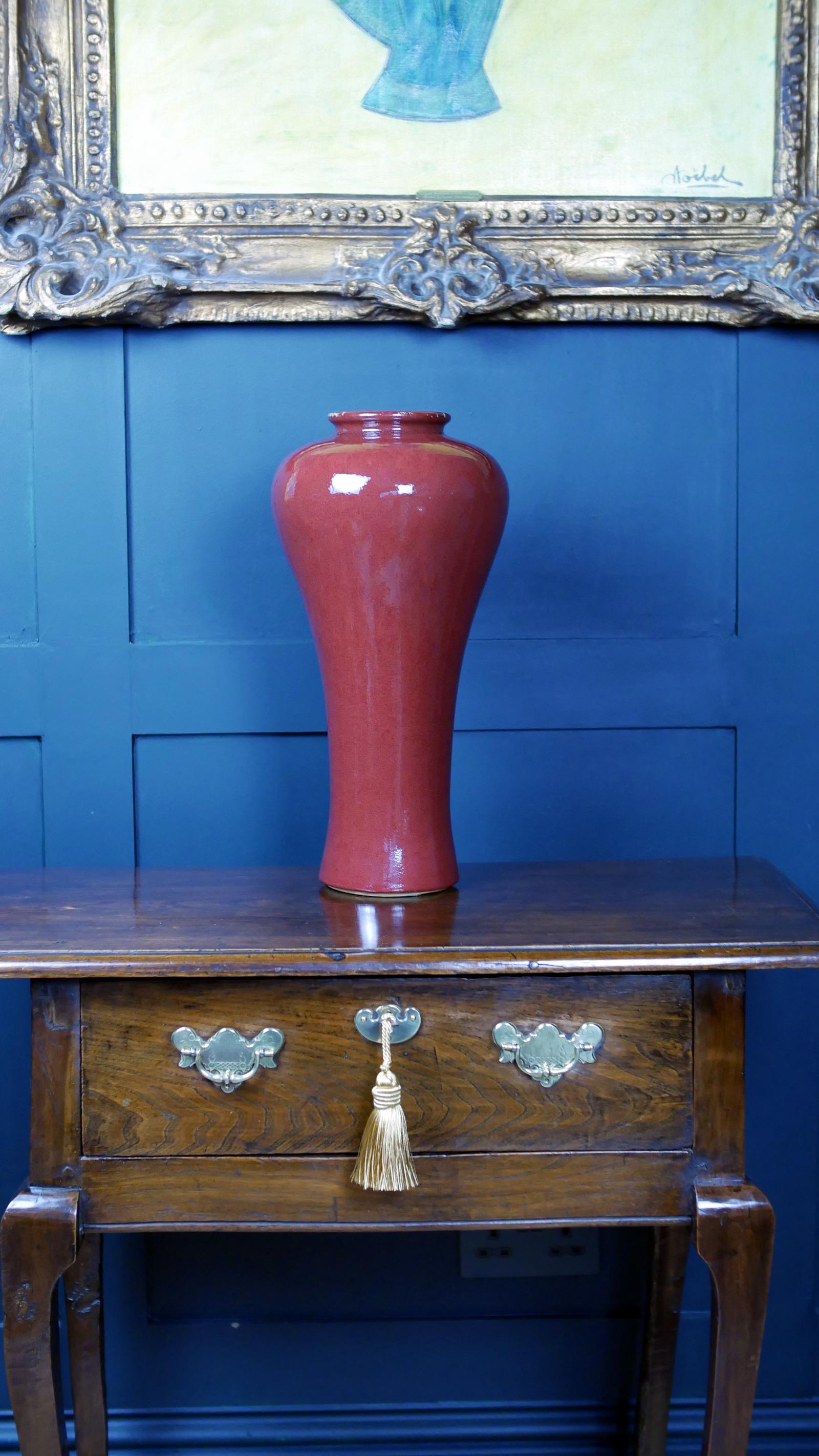 Elevate your space with this stunning Sang de Boeuf vase, a true statement piece that exudes timeless elegance and artistic mastery. Crafted with exquisite detail, this large-scale ceramic masterpiece showcases the rich, deep hues and captivating crackle glaze characteristic of Sang de Boeuf, reminiscent of antique Chinese porcelain. Its commanding presence makes it the perfect centrepiece for any sophisticated interior, whether displayed alone or filled with vibrant florals. Embrace a touch of history and luxury—transform your decor with this extraordinary vessel that promises to be the focal point and conversation starter in your collection. It has some age related marks.