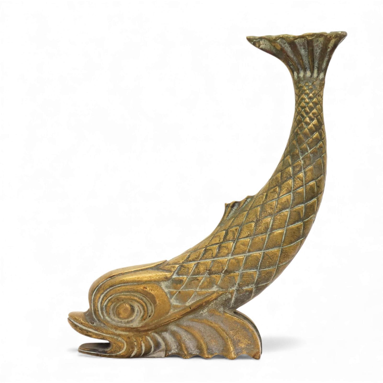 A striking and rare in feel Victorian-era brass dolphin sculpture with expressive form and depth
