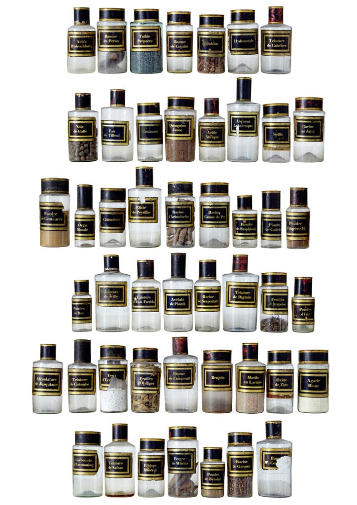 Large Collection of 48 19th Century French Glass Apothecary Chemist Jars