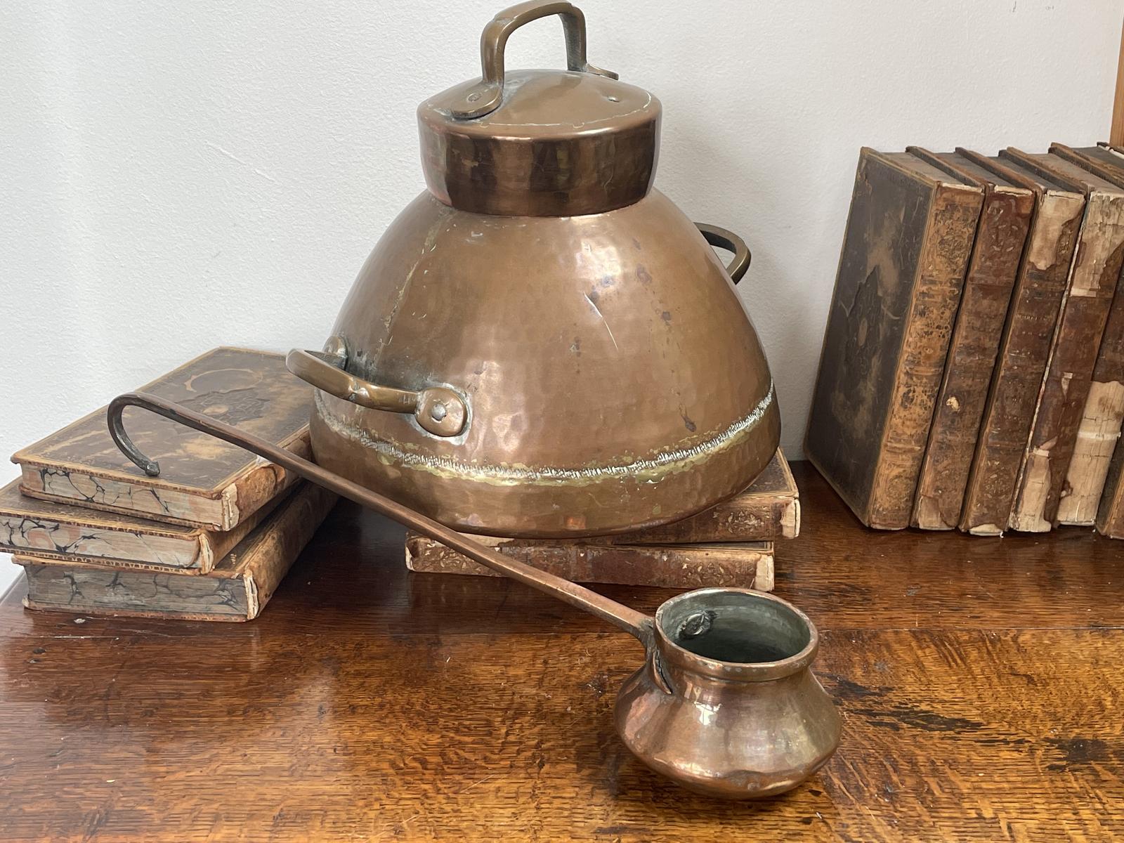 Large Continental Copper Milk Pot or Brewing Kettle & Ladle 1900-1910