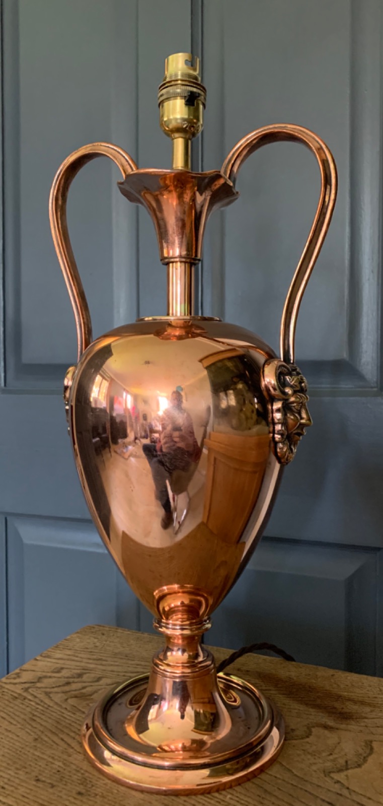 Large Copper & Brass Table Lamp; Rewired & PAT Tested c.1890