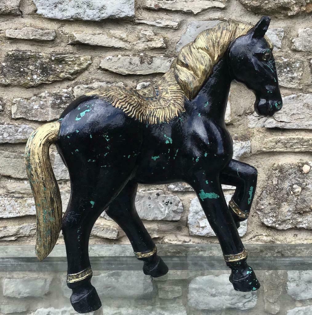 Large Decorative Indian Hand Made Wooden Horse, Painted with Gilt Decoration