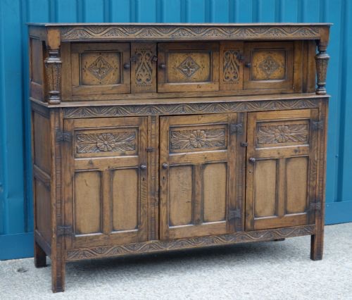 Large Distressed Ipswich Carved Oak Court Cupboard (1 of 1)