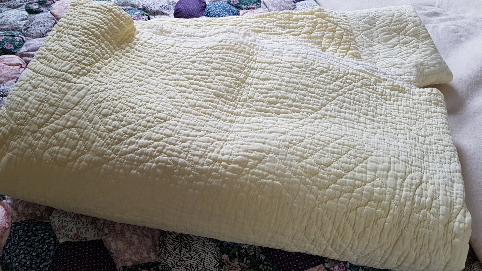 Large 'Double Bed Size' True Vintage Hand Stitched Durham Quilt, Some Faults