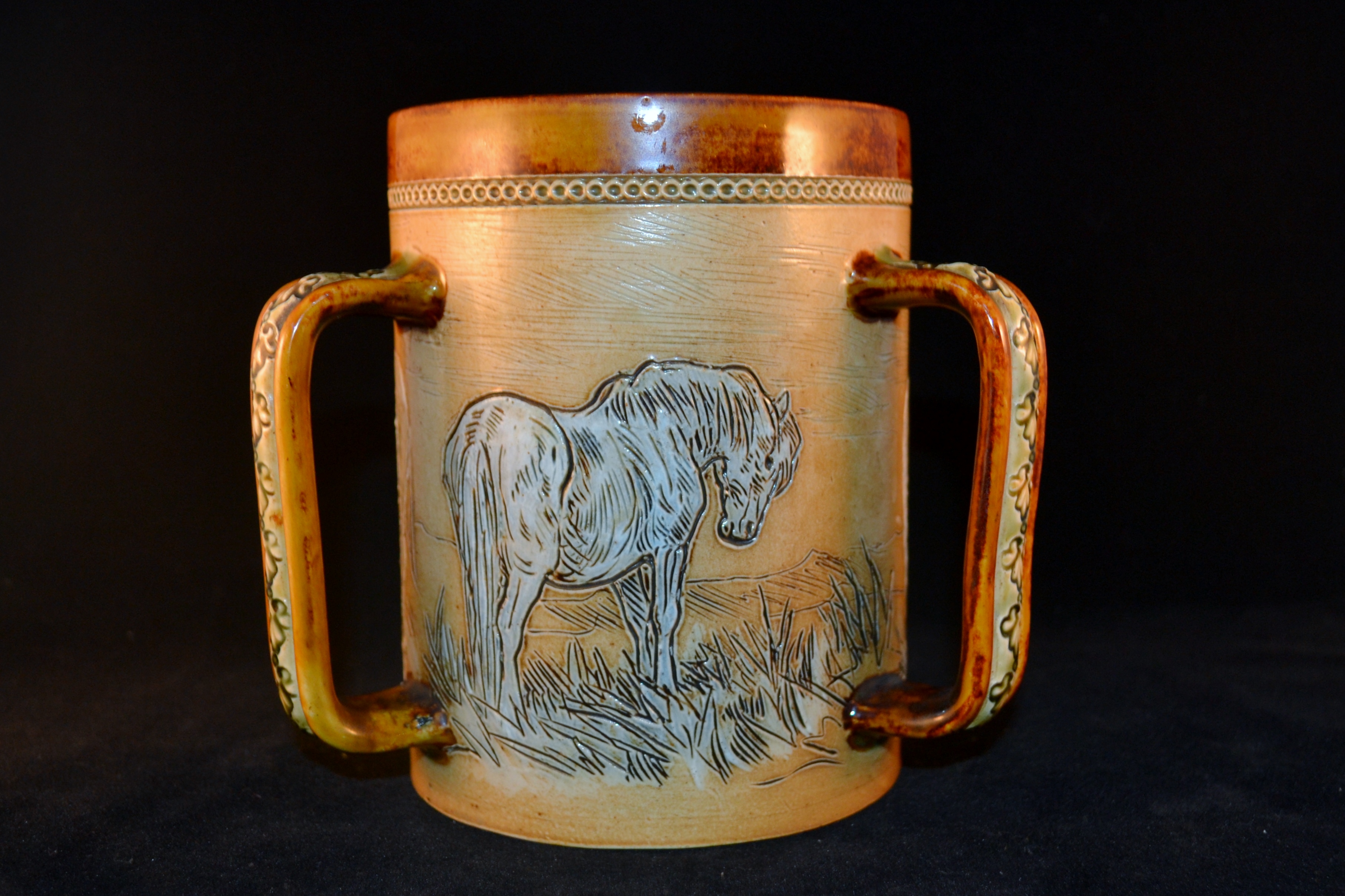 Large Doulton Lambeth Tyg Decorated with Horses by Hannah Barlow 1891-1902