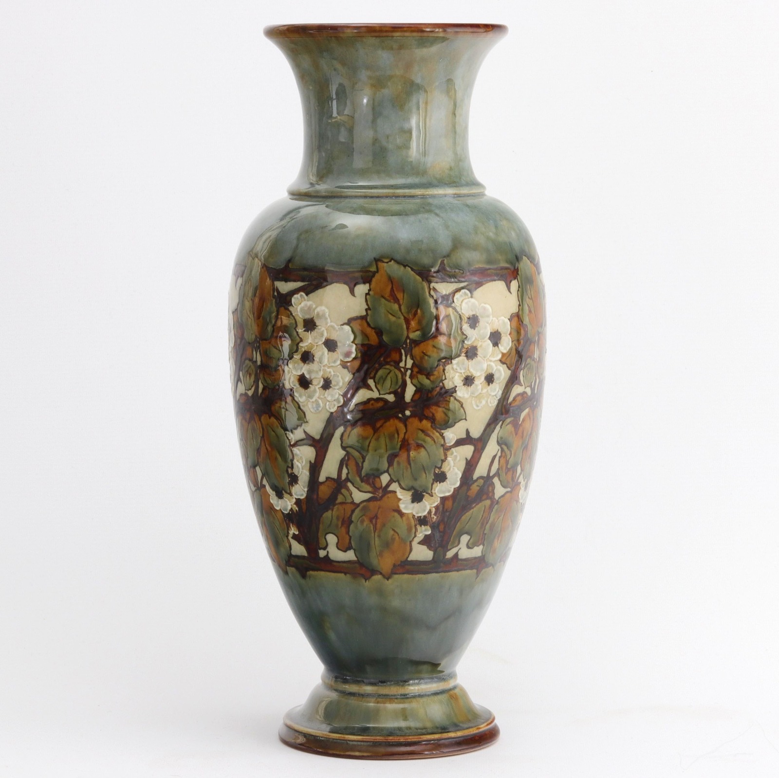 Large Doulton Stoneware Vase with Flowering Blackberry by Eliza Simmance c.1910