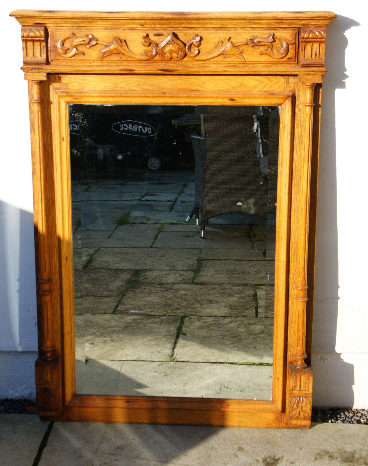 Large Early 20th Century Carved Oak Overmantle Mirror