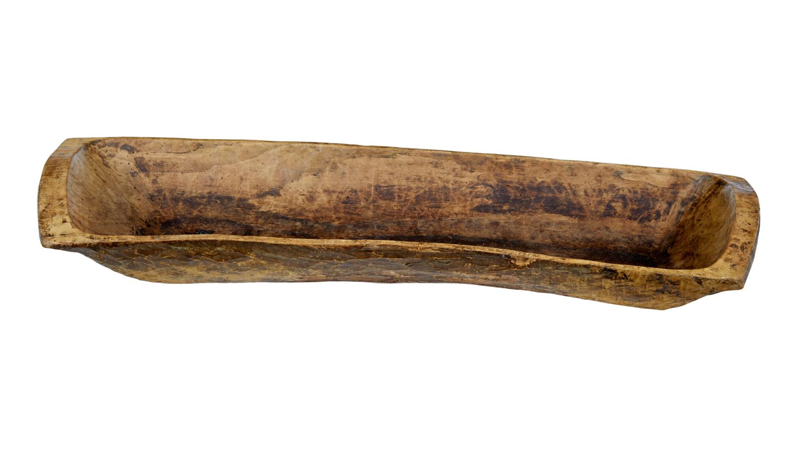Large early 20th century dug out bowl circa 1900. Large bowl or server that has been hand dug out from a solid piece of wood, often these were used to feed animals, although there is no evidence that this was used. Ideal for a table display in the home or for retail. Evidence of dead inactive treated worm. Minor surface marks.