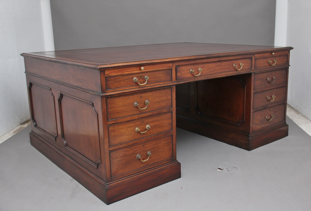 Large Early 20th Century Mahogany Partners Desk
